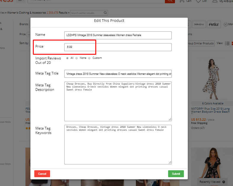 • Imported Product Price | Magento 2 Dropship